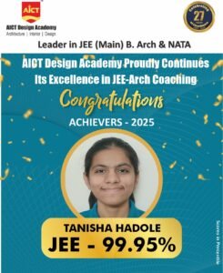 पिंपरी (प्रतिनिधी) : एआयसीटी डिझाईन अकादमी ची विद्यार्थिनी तनिशा हाडोळे हिने जेईई मेन B.Arch (जानेवारी 2025) परीक्षेत 99.95 गुण मिळवून अभिमानास्पद यश संपादन केले आहे. तिच्या या उत्तुंग यशामुळे संस्थेच्या गुणवत्तापूर्ण मार्गदर्शनाची पुन्हा एकदा प्रचिती आली आहे.तिच्या या उल्लेखनीय यशाबद्दल लीना सप्रा, वास्तू विशारद अपर्णा शिंदे, शिवानी सुर्वे, रवी सर आणि एआयसीटी डिझाईन अकादमीच्या संपूर्ण स्टाफने तिचे अभिनंदन केले.
