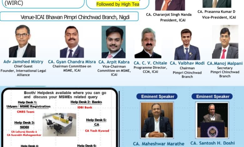 पिंपरी (प्रतिनिधी) निगडी येथील इन्स्टिट्यूट ऑफ चार्टर्ड अकौंटन्टस ऑफ इंडिया ( आयसीएआय) यांच्या वतीने उद्योजकांसाठी “एक दिन एमएसएमई के नाम” या कार्यक्रमाचे आयोजन करण्यात आले असल्याची माहिती अध्यक्ष सीए वैभव मोदी यांनी दिली.