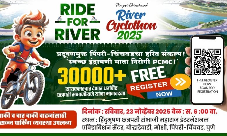 पर्यावरण संवर्धनाचा संदेश घेऊन इंद्रायणी नदीकाठी पुन्हा एकदा सायकलची चाके फिरणार आहेत. “इंद्रायणी नदी स्वच्छता जनजागृती मोहिमे” अंतर्गत आयोजित “रिव्हर सायक्लोथॉन-2025” या भव्य उपक्रमात यंदा तब्बल ३५ हजाराहून अधिक सायकलपटू सहभागी होणार आहेत. हा उपक्रम रविवार, दि. 23 नोव्हेंबर 2025 रोजी सकाळी 6 ते 10 या वेळेत ‘‘स्टॅच्यू ऑफ हिंदूभूषण’’ छत्रपती संभाजी महाराज स्मारक, बोऱ्हाडे वाडी, मोशी येथून सुरू होईल, अशी माहिती अविरत श्रमदान संस्थेचे डॉ. निलेश लोंढे यांनी दिली.